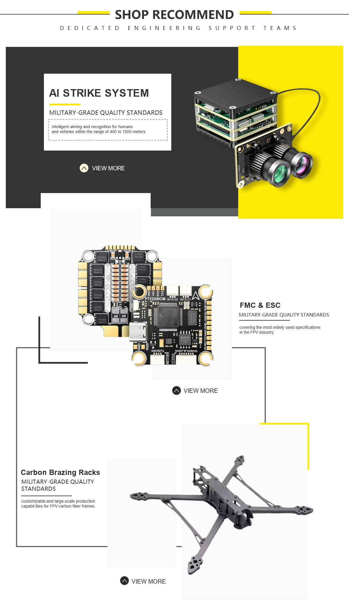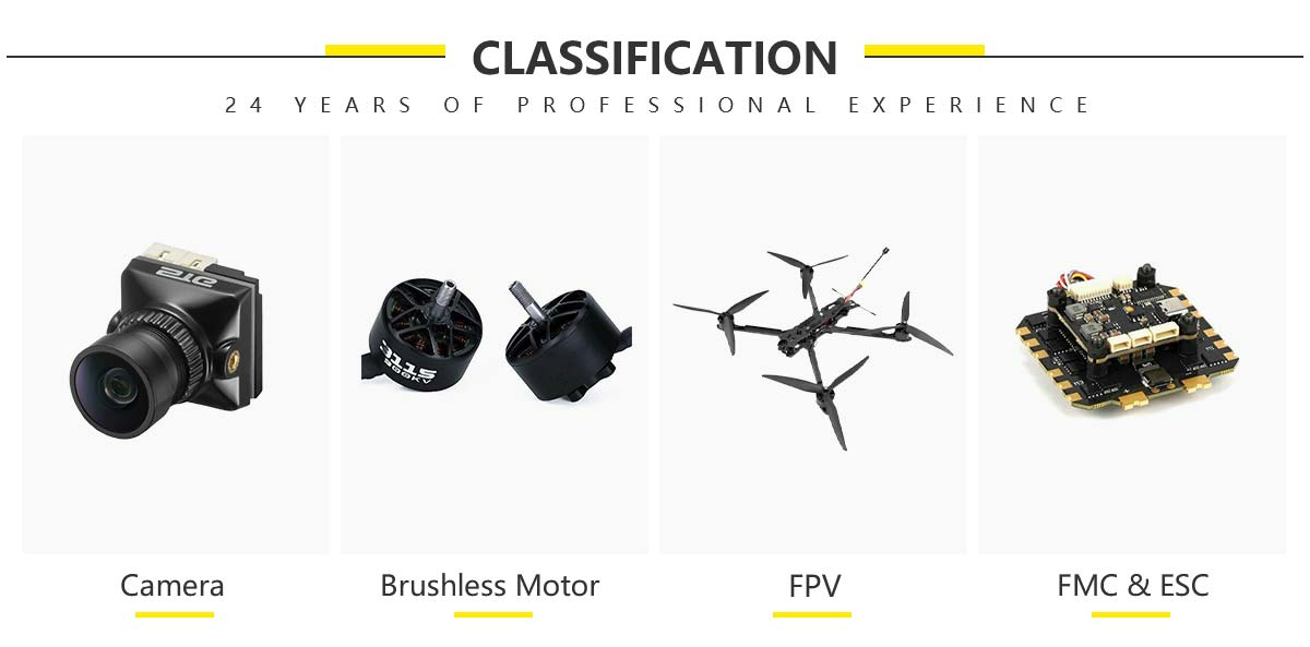 At present, the company mainly produces and sells UAV accessories, carbon brazing FPV frames, various types of FPV brushless motors, flight control ESCs, image transmission, receivers and other products